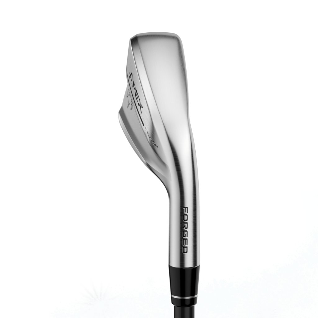 Apex Ti Fusion Plated to najwyższej jakości kij żelazny dla graczy z tytanowym licem i kutą, pustą konstrukcją. Zapewnia wysoką prędkość piłki, stabilność i płynne czucie uderzenia. Eleganckie chromowane wykończenie i zoptymalizowany kształt główki zapewniają doskonałe połączenie kontroli i tolerancji na błędy.